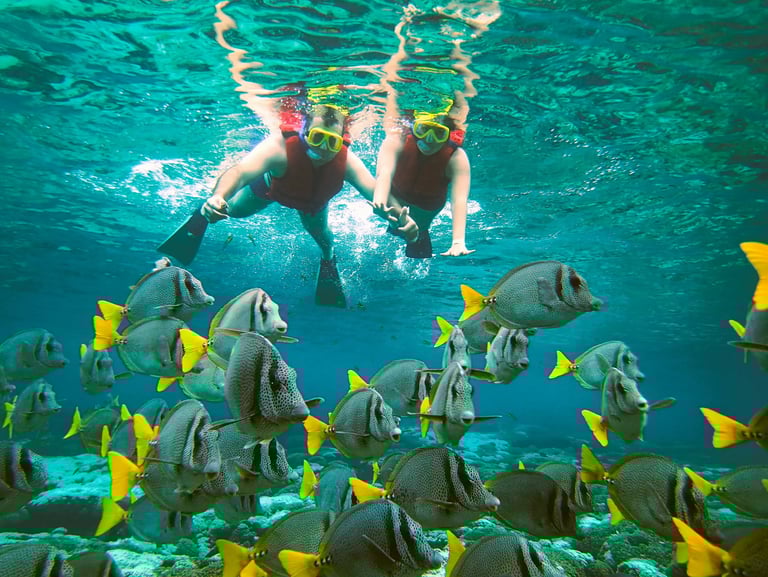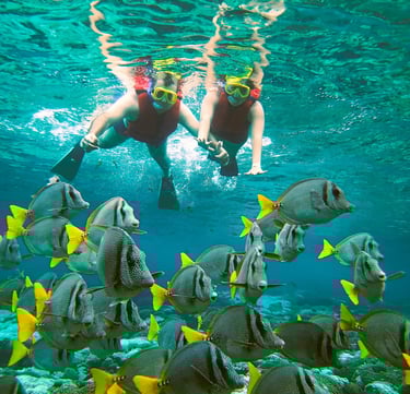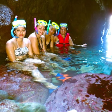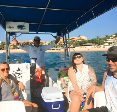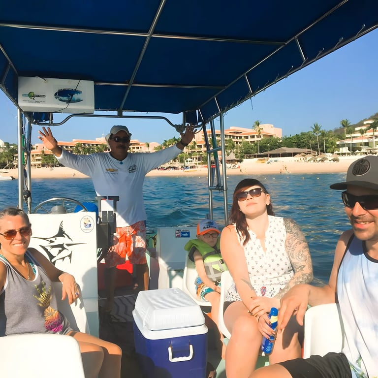 MEDIO TOUR: Conoceremos de 3 a 4 Bahías Principales las mas populares, realizaremos hasta 3 escalas de Snorkel y una escala para degustar nuestra gastronomía en la bahía Maguey.